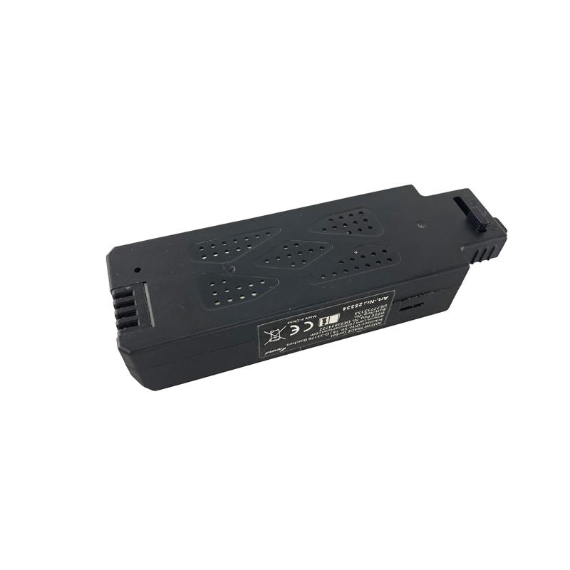 Großer LiPo Flugakku mit 7,4V und 1200mAh für lange Flugzeiten von bis zu 15 Minuten und eingebauter Verriegelung für sicheren Sitz im Modell sowie eingebauter Ladebuchse (USB-C)