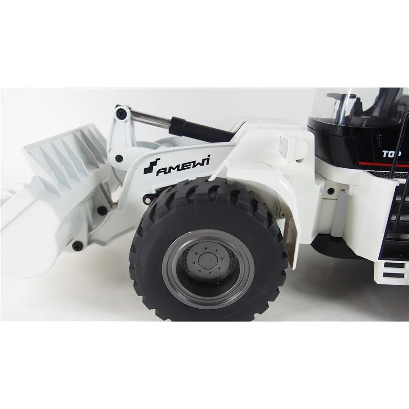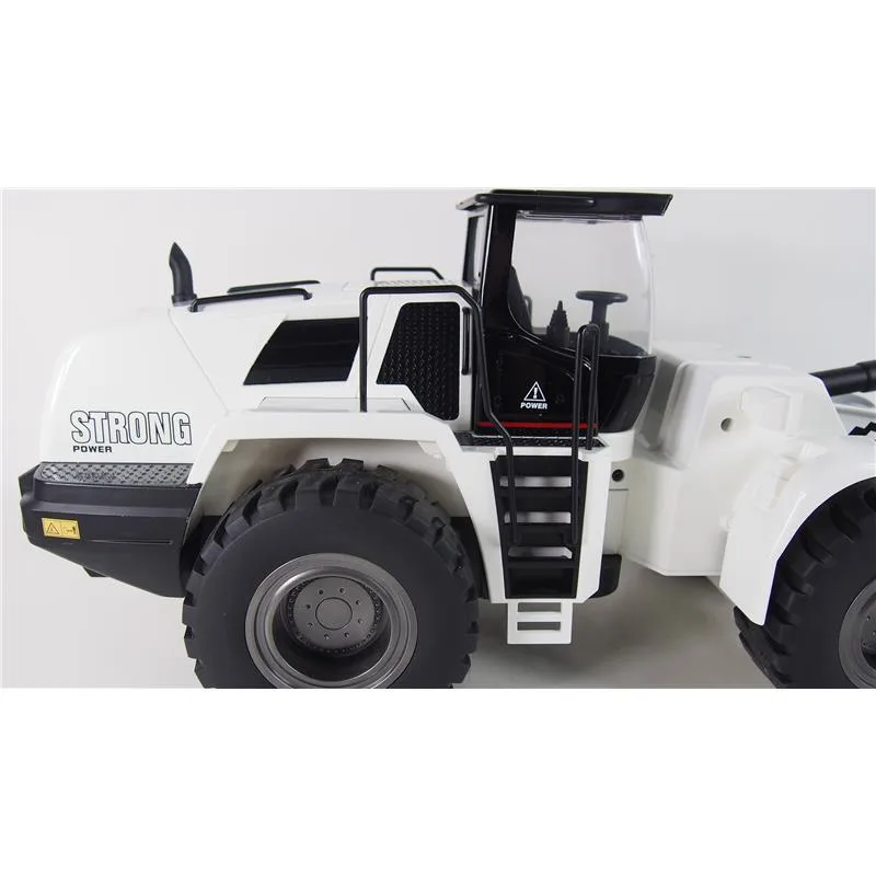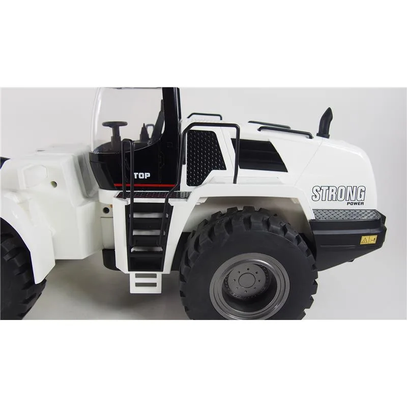 Dieser hochwertige Radlader schließt die Lücke zwischen RC Spielzeug und professionellem Modellbau. Der Ausleger, die 190mm breite Schaufel und Teile des Aufbaus bestehen aus echtem Metall. Die Kanzel wurde aus schlagzähem Kunststoff gefertigt. Die optische und technische Ausstattung dieses 1:14er Modells überzeugt nicht nur versierte Modellbauer. Das Knickgelenk des Radladers lässt sich sehr präzise und feinfühlig steuern. Proportional sind die Funktionen hoch / runter, Schaufel auf / zu und Gas. Somit ist ein präzises Arbeiten mit diesem hochwertigen Modell kein Problem.