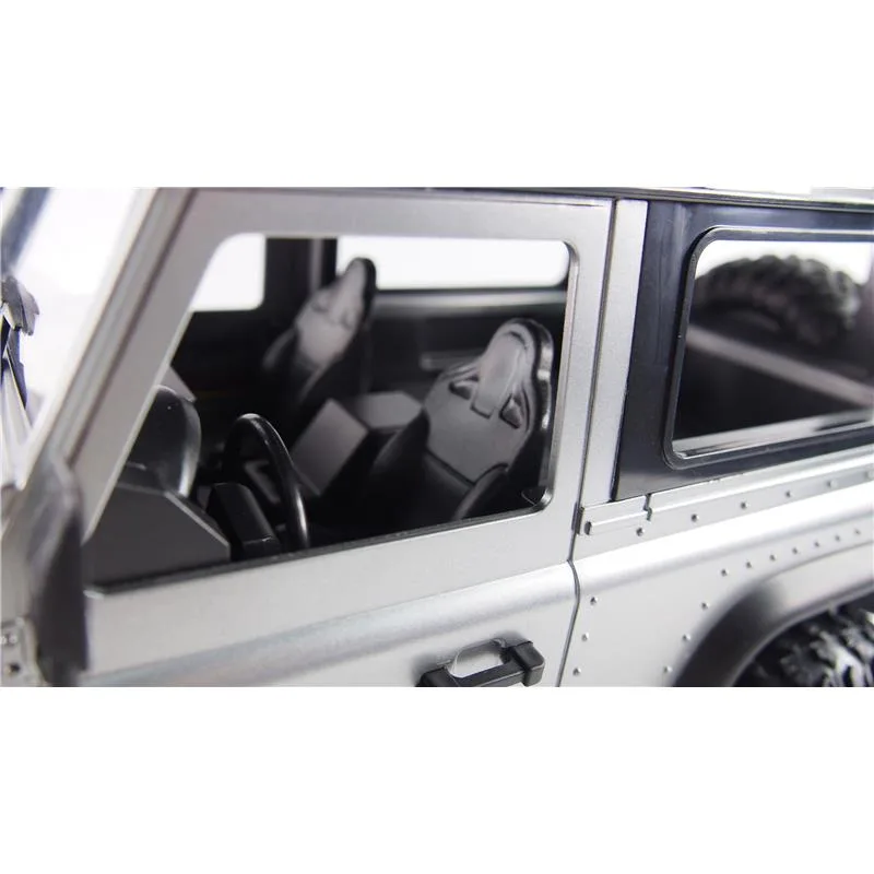 Lizenzierter Nachbau eines Land Rover Defender D90 in Scale-Optik mit vollwertiger LED-Beleuchtung inkl. Blinker, die das Geländefahrzeug zu einem echten Hingucker macht. Das Modell vereint vollproportionale Fahreigenschaften mit ausgereifter Technik. Bis ins kleinste Detail dem Original nachempfunden werden alle Anbauteile wie Scheibenwischer, Beleuchtungsabdeckungen, Spiegel, Lufteinlässe usw. mitgeliefert. Alles wird gesteckt, nichts muss geklebt werden. Ein Dachgepäckträger ist bereits fertig montiert und bietet Platz für eigene Ideen wie z.B. eine optionale Werkzeugbox, Ersatzräder o.Ä. Die hochwertige Lackierung der festen ABS-Karosserie und das Metall-Chassis runden das Paket ab. Die Motorhaube kann geöffnet werden – darunter befindet sich ein Fach für den großen 1200mAh Li-Ion Akku. Als RTR-Version (Ready-to-Run) sind im Lieferumfang ebenfalls die Fernsteuerung und ein USB-Ladekabel enthalten.