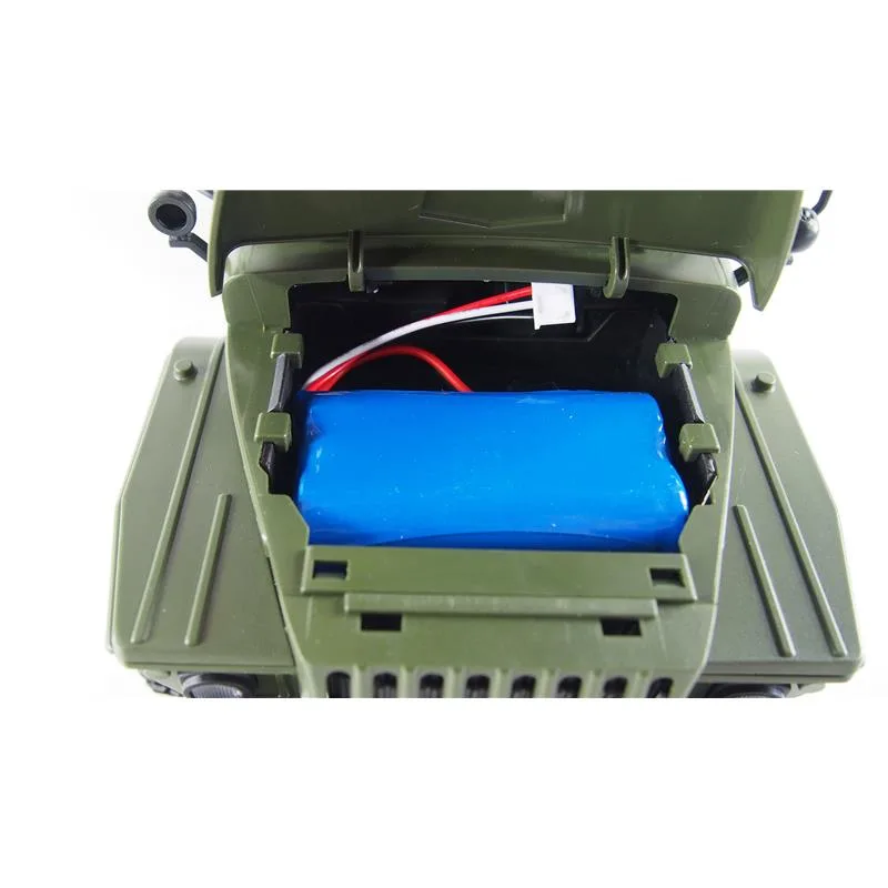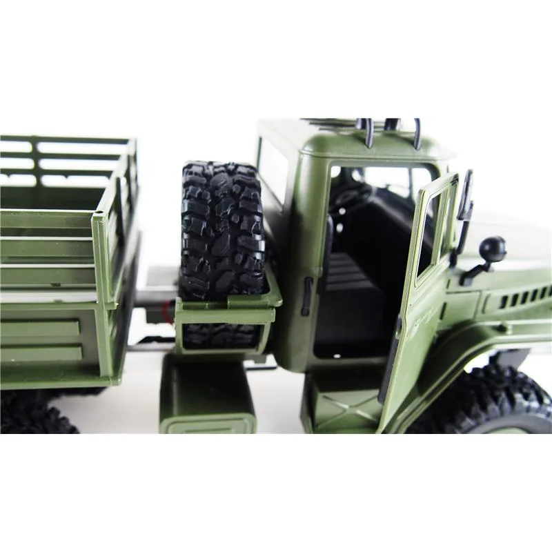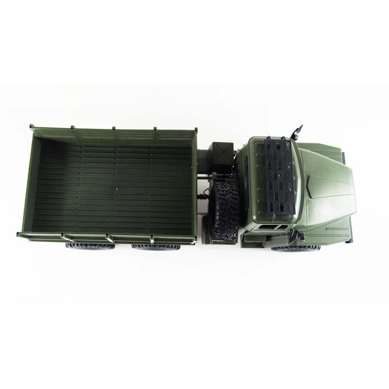 Scale Modell eines russischen Ural 6WD Trucks im Maßstab 1:16, das fahrfertig montiert als RTR-Variante (Ready-to-Run) ausgeliefert wird. Dank proportionaler Steuerung ist dieser Scale LKW mit hohem Detailgrad sehr feinfühlig zu bedienen. Die hochwertige Ausstattung, u.a. mit gekapseltem Getriebe, Allradantrieb, vollwertigem Lenkservo und Spritzwasserschutz, macht das Modell voll outdoortauglich und sorgt für eine gute Figur im Gelände. Fahrzeiten bis zu 45 Minuten in Verbindung mit der gut in der Hand liegenden 2,4GHz Fernsteuerung ermöglichen langen Fahrspaß. Die LED-Beleuchtung vorne, die High-Grip-Bereifung aus weichem Gummi und eine Steigfähigkeit von ca. 15° bei einer Höchstgeschwindigkeit von 10-12km/h runden das Gesamtpaket zusätzlich ab.