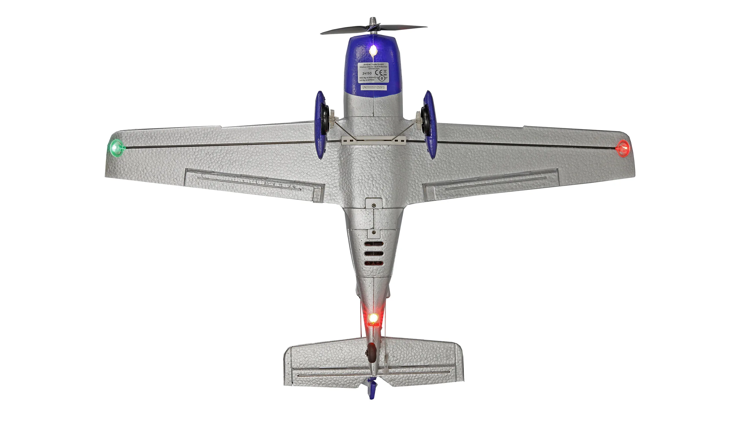 Weitere Features: Scale LED-Beleuchtung für eine gute Lagenerkennung 3-Stufen Gyro, schaltbar an der Fernsteuerung Automatischer Looping über Fernsteuerung aktivierbar Automatischer Rückenflug über die Fernsteuerung schaltbar Auslieferung in Mode 2 Scale Fahrwerk, damit auch Bodenstartfähig bei ebenem Untergrund Handstart problemlos möglich Schöne und gut Sichtbare Lackierung Robustes Hauptmaterial welches auch mal eine härtere Landung aushält Akku wechselbar