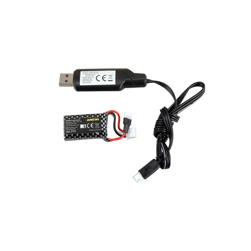 Technische Daten: Maßstab: 1:20 Länge: 210mm Breite: 85mm Höhe: 60mm Gewicht (fahrfertig inkl. Akku): 222g Hauptmaterial: Kunststoff Antrieb: 4WD Akku: LiPo 2S 7,4V 300mAh, Molex-Stecker, 36x20x10mm, 17g Fahrzeit: bis zu 20min Höchstgeschwindigkeit: bis zu 20km/h Fernsteuerung: 3-Kanal 2,4GHz Pistole Reichweite: 50m Ladegerät: USB-Kabel Ladezeit: 60-70min