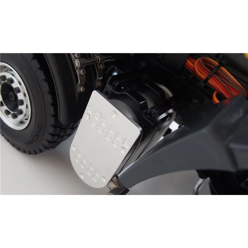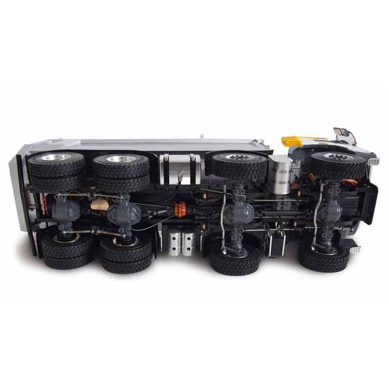 Sehr hochwertiger Scale LKW-Kipper im europäischen Stil (detaillierte Fahrerkabine aus Kunststoff) das Chassis, Achsen, Antriebe, Mulde etc. sind aus hochwertigem Metall hergestellt. Das Modell ist mit einem 2 – Gang Getriebe und vom Sender aus schaltbare Differentialsperren ausgerüstet, welches den Einsatz auch in unwegsamen Geländen problemlos zulässt. Mittels des starken Hydraulik Systems lassen sich größere Lasten problemlos transportieren und abkippen. Viele Anbauteile wie z.B. der Tank usw. sind ebenfalls aus Aluminium hergestellt.
