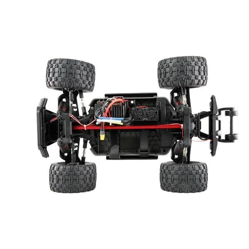 Die riesigen Monstertruck-Offroad-Reifen bieten außergewöhnlichen Grip und Vortrieb, ergänzt durch eine Wheelie Bar für spektakuläre Action auf zwei Rädern, besonders bei 4S LiPo. Dank der App-Einstellmöglichkeiten kann die Leistung des Modells in Echtzeit individuell angepasst werden, egal ob für Einsteiger oder Profis. Die mitgelieferte 2,4 GHz Fernsteuerung verfügt über eine Dual Rate für den Gas-Kanal, mit voreingestellten Leistungsoptionen von 70% oder 100%.