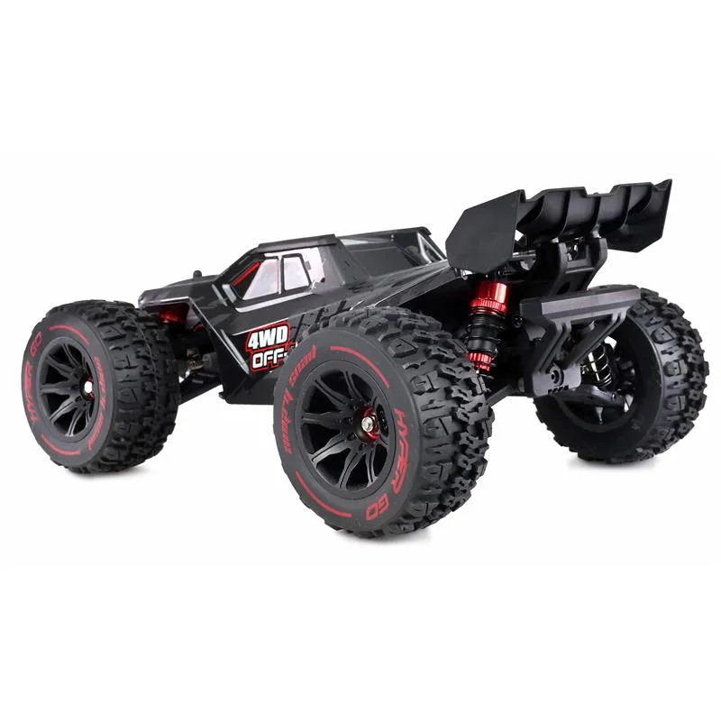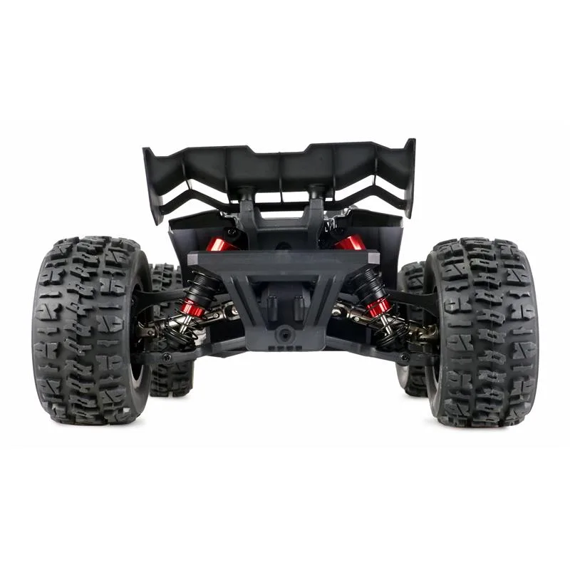 Der Hyper Go Brushless Truggy im Maßstab 1:14 kommt dank seines brachialen 4WD-Antriebs auf über 55km/h Top-Speed. Hochwertige Komponenten wie die Aluminium-Öldruck-Stoßdämpfer, Metall-CVD-Antriebswellen, -Kardanwellen, -Getriebe und -Differentiale sorgen für eine hohe Langlebigkeit dieses Offroad-Racers. Ein aktiver Lüfter am Motor ermöglicht optimale Kühlung. Das einstellbare Fahrwerk, welches auf einer Aluminium-Chassisplatte sitzt, sorgt für extreme Spurtreue. Eine Wheelie-Bar für mehr Fahrstabilität runden das Paket zusätzlich ab.