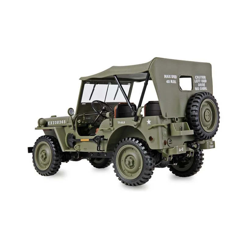 Der Jeep Willys MB Scale Crawler im Maßstab 1:14 ist eine detailgetreue Nachbildung des legendären Geländefahrzeugs, das während des Zweiten Weltkriegs als robustes und vielseitiges Einsatzfahrzeug der US-Armee bekannt wurde. Dieses ferngesteuerte Modell verbindet authentisches Design mit moderner RC-Technik und bietet ein realistisches Fahrerlebnis auf jedem Terrain.