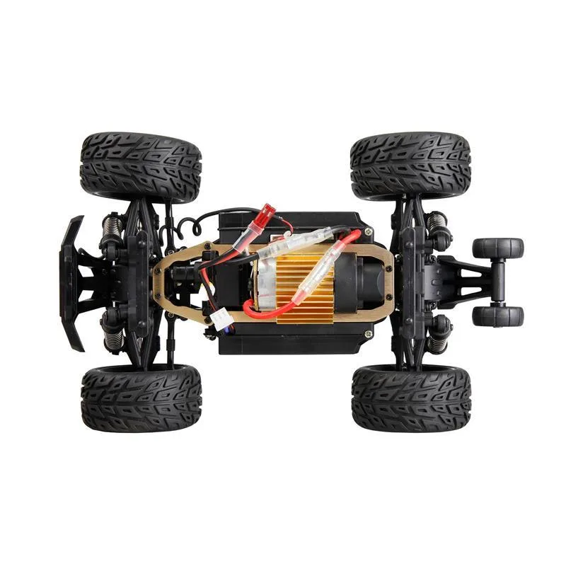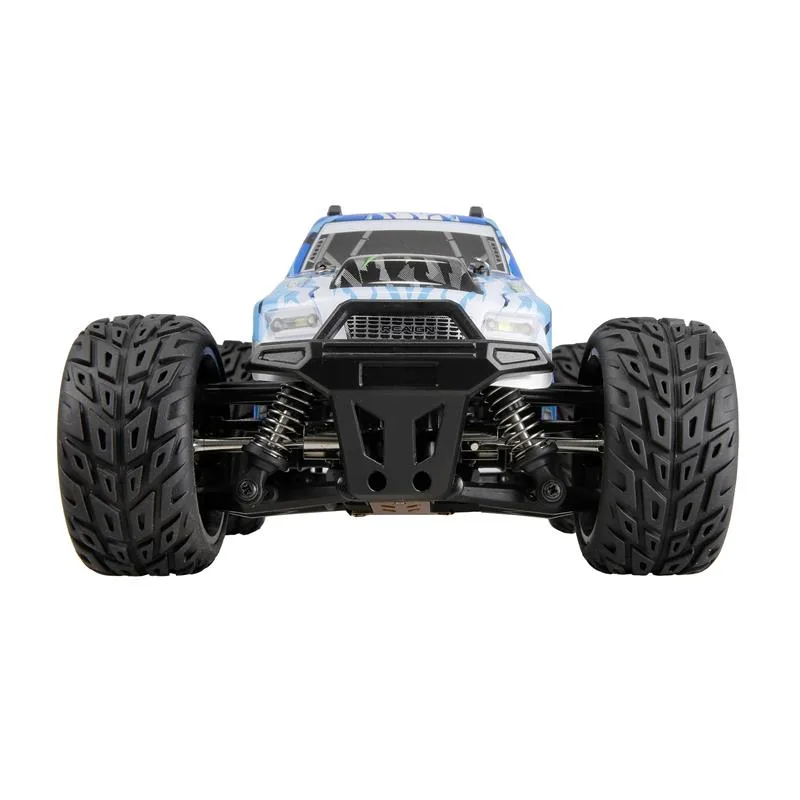 Weitere Features: RTR-Set (Ready-to-Run) inkl. Fernsteuerung, Akku, Ladekabel Überschlagschutz Wheelie-Bar LED-Beleuchtung Zwei schaltbare Geschwindigkeitsstufen Weiche Gummireifen Spritzwasserschutz Störungssicheres 2,4GHz-Funksystem Komplett kugelgelagert