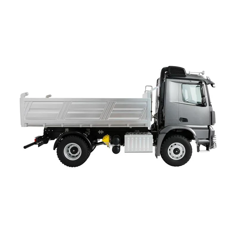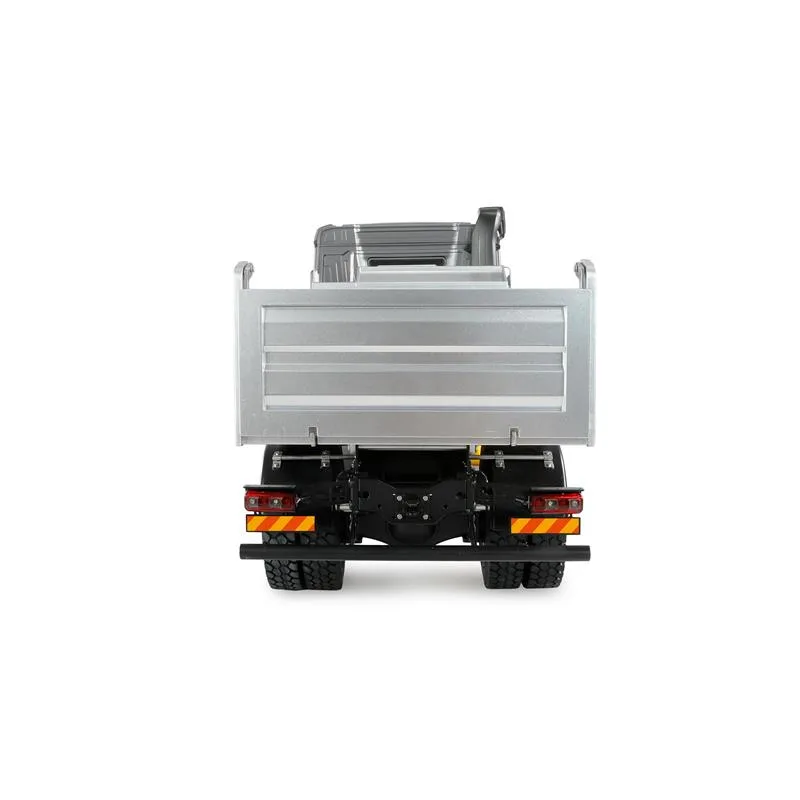 Dieser lizenzierte Lkw aus der Mercedes-Benz Arocs-Serie überzeugt als 4×4-Modell mit einer elektrisch betriebenen Kippfunktion über ein Schneckengetriebe: Durch seine detailgetreue Optik im Maßstab 1:14 lässt er das Herz von Modellbau-Fans höherschlagen. Das Fahrzeug bringt 5 Kilogramm auf die Waage, alle Funktionen lassen sich bequem über die Fernsteuerung bedienen. Chassis, Mulde, Antriebsstrang und sämtliche Wellen bestehen vollständig aus Metall, was eine hohe Langlebigkeit der Bauteile garantiert. Die Fahrerkabine ist im Maßstab nachgebildet und mit einem kompletten Innenraum ausgestattet. Gummibereifung mit hoher Bodenhaftung und Felgen aus Metall runden das Erscheinungsbild ab.