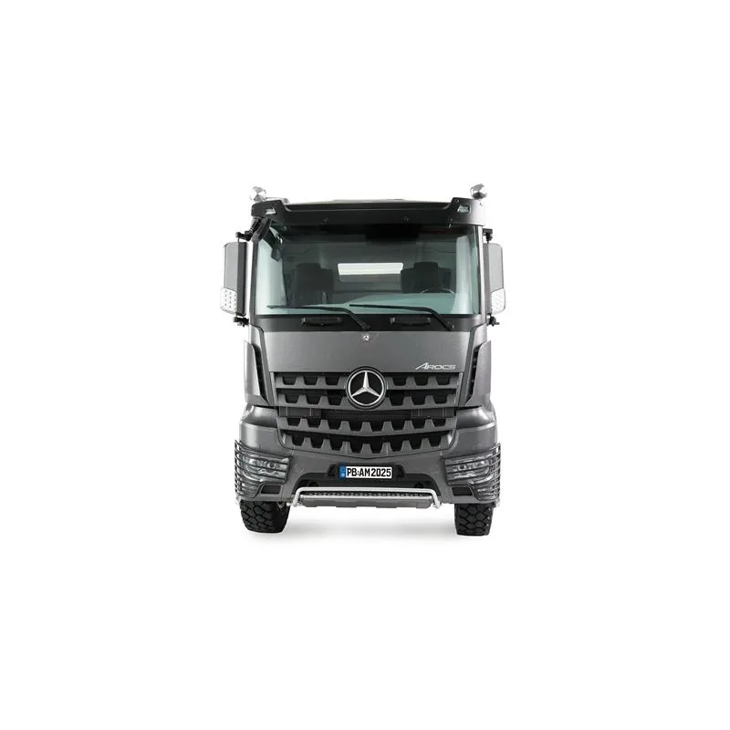 Weitere Features: RTR-Paket (Ready-to-Run) inkl. Fernsteuerung, Akku und Ladegerät Exklusives Mercedes-Benz Arcos Lkw-Lizenzmodell 2-Gang-Getriebe über Sender schaltbar Chassis und Aufbau, mit Ausnahme der Fahrerkabine, aus Metall gefertigt Scale Fahrerkabine mit vollständigem Interieur Scale High-Grip Gummibereifung inkl. Scale Felgen aus Metall Starkes Lenkservo mit Metallgetriebe fertig eingebaut Antriebsachse (hinten) mit Doppelbereifung für maximale Traktion 4WD-Antrieb Ausgestattet mit Sound-Modul Viele Anbauteile wie Signalhorn, Tankattrappe, Transportbox und Schutzgitter für Lampen im Lieferumfang enthalten
