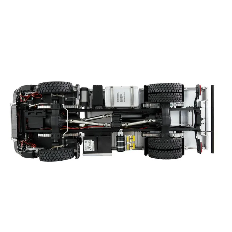 Dieser lizenzierte Lkw aus der Mercedes-Benz Arocs-Serie überzeugt als 4×4-Modell mit einer elektrisch betriebenen Kippfunktion über ein Schneckengetriebe: Durch seine detailgetreue Optik im Maßstab 1:14 lässt er das Herz von Modellbau-Fans höherschlagen. Das Fahrzeug bringt 5 Kilogramm auf die Waage, alle Funktionen lassen sich bequem über die Fernsteuerung bedienen. Chassis, Mulde, Antriebsstrang und sämtliche Wellen bestehen vollständig aus Metall, was eine hohe Langlebigkeit der Bauteile garantiert. Die Fahrerkabine ist im Maßstab nachgebildet und mit einem kompletten Innenraum ausgestattet. Gummibereifung mit hoher Bodenhaftung und Felgen aus Metall runden das Erscheinungsbild ab.