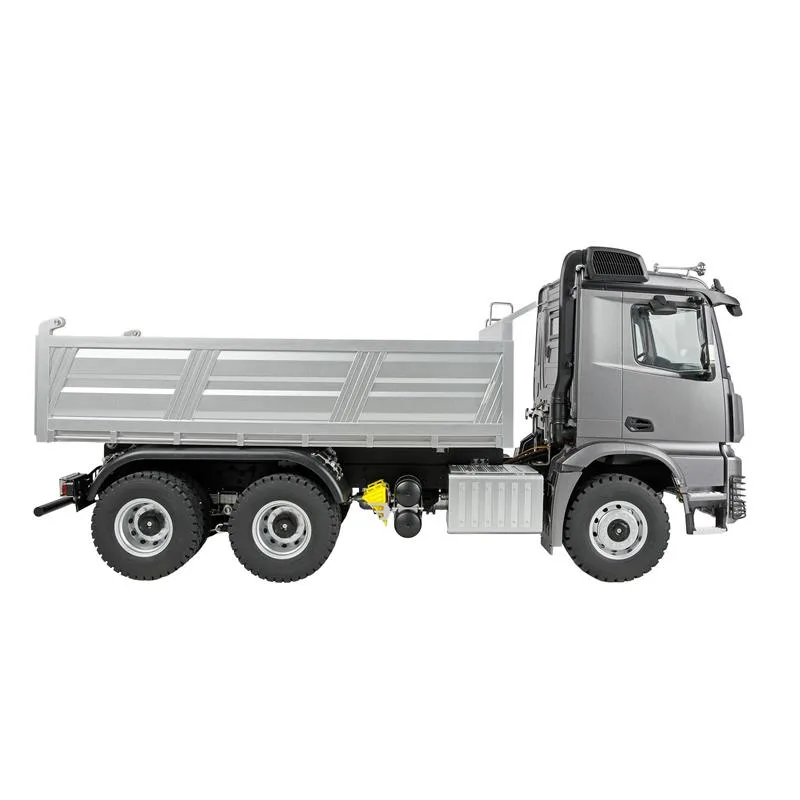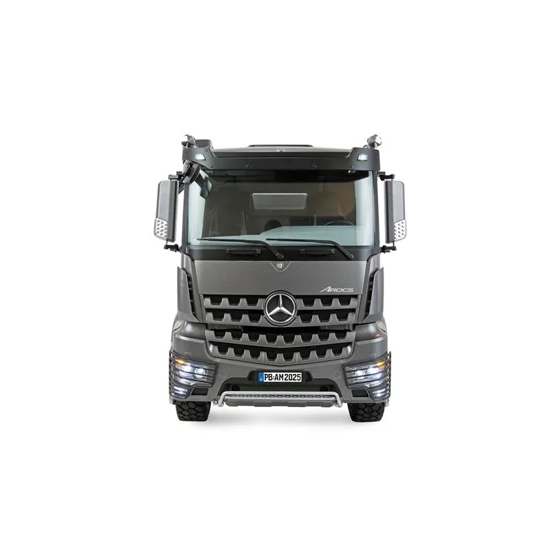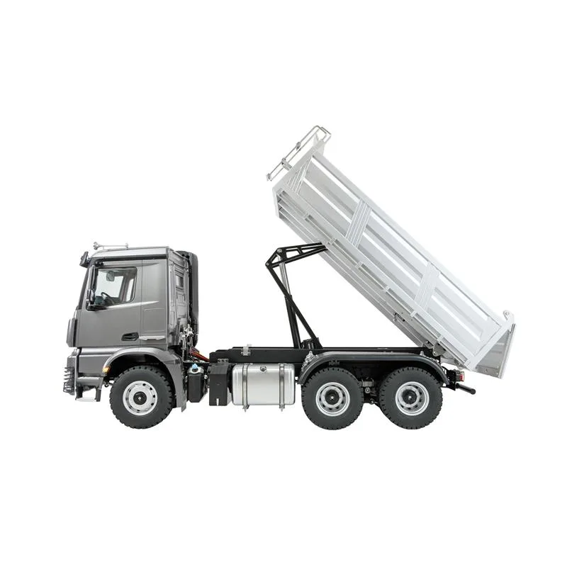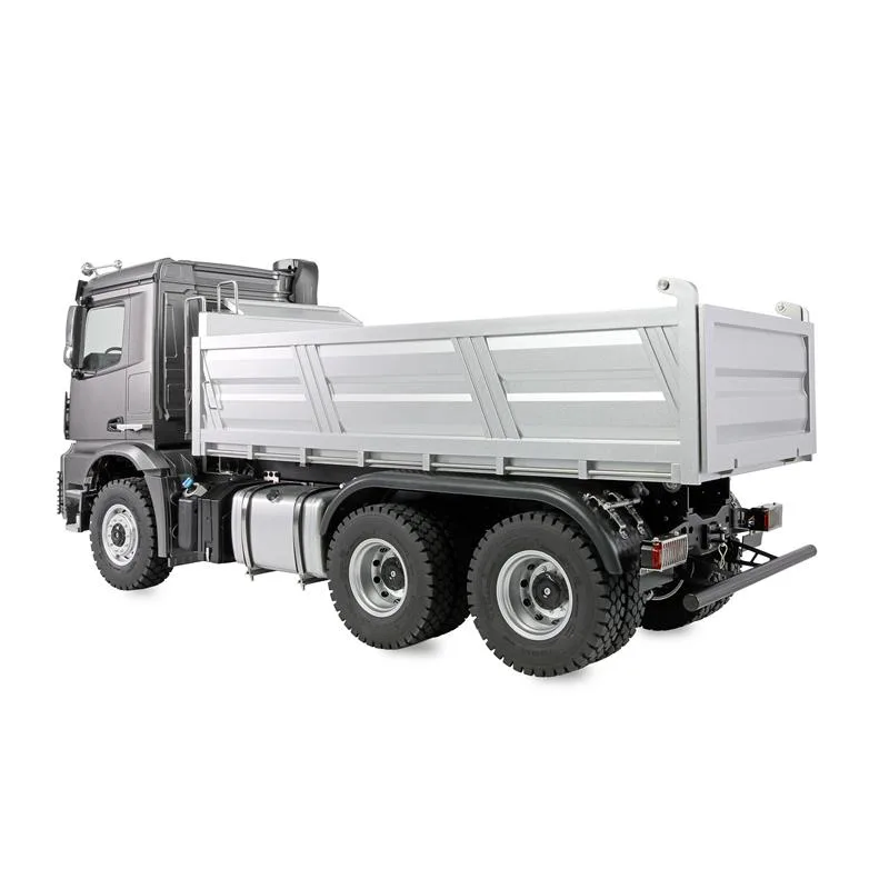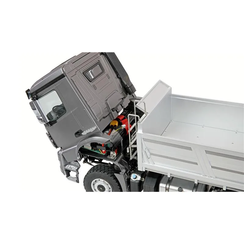 Weitere Features: RTR-Paket (Ready-to-Run) inkl. Fernsteuerung, Akku und Ladegerät Exklusives Mercedes-Benz Arcos Lkw-Lizenzmodell Chassis und Aufbau, mit Ausnahme der Fahrerkabine, aus Metall gefertigt Scale-Fahrerkabine mit vollständigem Interieur Ausgestattet mit Sound-Modul für reale Fahrgeräusche mit Lautstärkenregelung Aluminium-Mulde mit 10kg Traglast und 47° Abkippwinkel Scale-Räder mit Gummibereifung inkl. Scale-Felgen aus Metall Starkes Lenkservo mit Metallgetriebe fertig eingebaut 3x Differentialgetriebe Lange Fahrzeit von bis zu 45 Minuten Antriebsachse (hinten) als Pendelachse ausgelegt mit Doppelbereifung für maximale Traktion 6WD-Antrieb Viele Anbauteile wie Signalhorn, Tankattrappe, Transportbox und Schutzgitter für Lampen im Lieferumfang enthalten