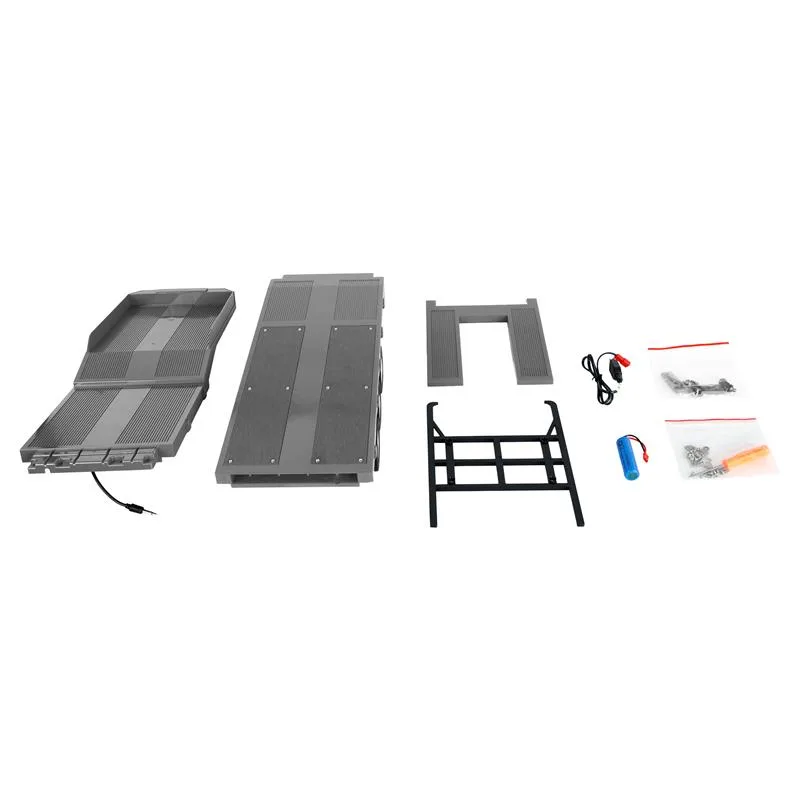 Der Tieflader-Sattelauflieger Dreiachser ist die ideale Ergänzung zur Scania 770S Zugmaschine im Maßstab 1:18. Der Auflieger lässt sich direkt mit der Fernsteuerung des Fahrzeugs bedienen und ermöglicht so ein realistisches und komfortables Zusammenspiel zwischen Zugmaschine und Trailer. Dank der elektronisch steuerbaren Rampen und Stützen können diese präzise auf- und abgefahren werden, was das Be- und Entladen sowie das An- und Abkoppeln besonders einfach macht. Eine integrierte LED-Beleuchtung sorgt zusätzlich für eine authentische Atmosphäre – besonders eindrucksvoll bei Fahrten in gedämpftem Licht.