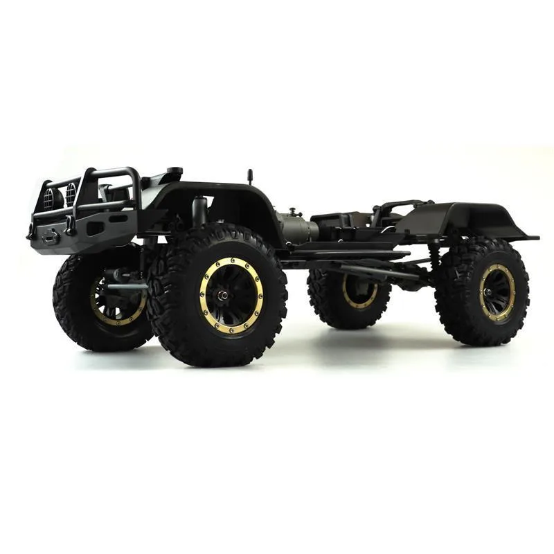 AMXRock RCX8B (Basis RTR) in grünDieser Top Crawler im Maßstab 1:8 vereint super Technik mit genialen Fahreigenschaften. Ausgestattet mit einem massiven 5mm starken Metallrahmen, Portalachsen, Aluminium Streben, hochwertigen komplett geschützten Öldruck Stoßdämpfern mit 500er Öl, 650er Bürstenmotor mit 23T, einem gedämpften Lenkungssystem und 2 – Gang Schaltgetriebe lässt diese Fahrzeug kaum Wünsche offen. Dieses Fahrzeug ist eine komplette Neuentwicklung und bringt einige neuartige Systeme zum ersten Mal auf den Markt.Features:5mm CNC gefräster 6061 Alu RahmenCVD AntriebswellenEinzigartiges Stoßdämpferdesign mit StaubschutzmanschettenEinzigartiges LenkungsdämpfungssystemPermanent gesperrte Achsen (Differentiale)Einzigartiges 2 – Gang Schaltgetriebe mit SchutzfunktionHochwertige Karosserie mit Magnetverschluss 1,2mm PVC4 Kanal FernsteuersystemHobbywing WP-1060 ESC (Li-Po fähig) Deans650 Crawler Motor brushed 23TEinstellbare Alu-MotorhalterungCNC gefrästes MotorritzelLenkservo 15kg Metallgetriebe WPSchaltservo 0,9kg, 17gKomplett kugelgelagertTechnische Daten:Länge: 648mmBreite: 293mmHöhe: 278mmRadstand: 375mmBodenfreiheit: min. 61mmRaddurchmesser: 134mmHigh Grip Super Soft ReifenFelgen: 39 x 75mmGewicht o. Akku: ca. 3,6kgMotor: 650 brushed 23TESC: Hobbywing WP-1060 (Li-Po fähig) DeansFernsteuerung: 2,4GHz 4 KanalKarosserie: 1,2mm PVC lackiertRahmen: 5mm CNC Alu 6061Lieferumfang:komplett montiertes Auto2,4GHz FernsteuerungAnleitung DE / ENBenötigtes Zubeör:Akku (Ni-Mh 7,2V oder Li-Po 7,4V) z.B. Amewi Art. 28895, 28899, 28900, 289024x Batterie 1,5V AA Mignon für SenderLadegerät