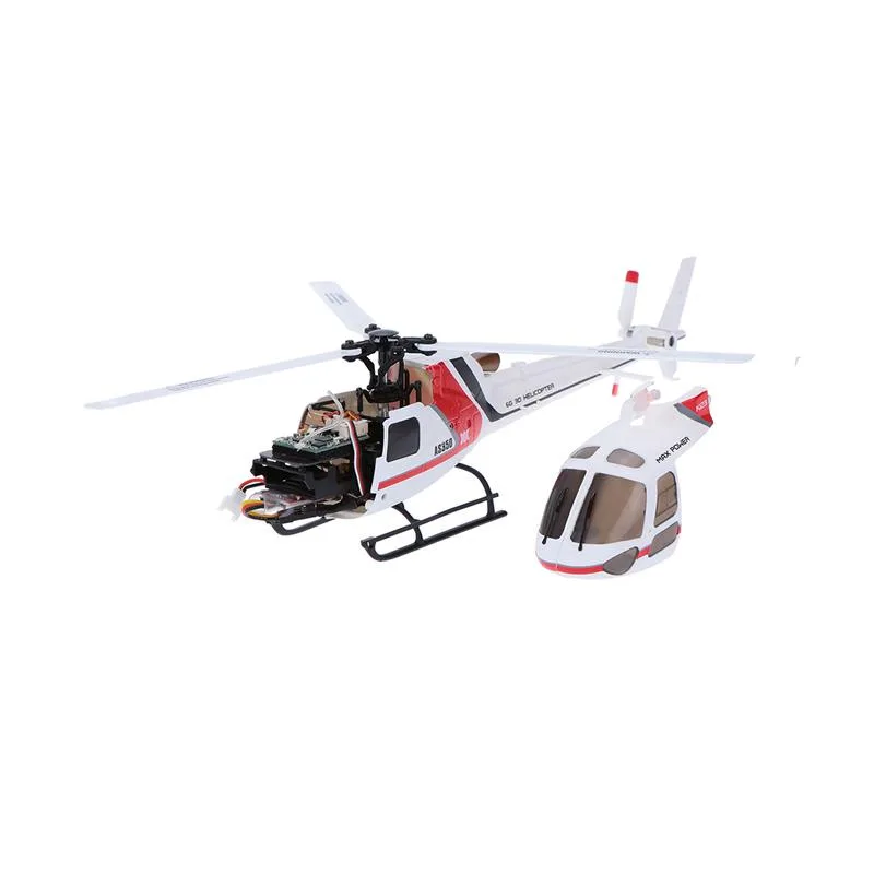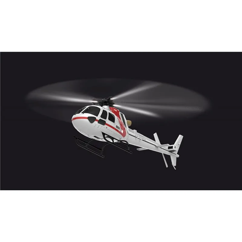 Sehr schöner Scale Hubschrauber mit 3 – Blatt Rotorkopf, 3D und 6G (Einsteiger) Modus. Das Modell lässt sich sowohl mit konstanter Drehzahl (Pitch gesteuert) als auch mit steigender Drehzahl (ähnlich Fixed Pitch) fliegen und im 6G Modus ist der Neigungswinkel des Modells begrenzt. Er hat dann ähnliche Flugeigenschaften wie ein Koaxial Hubschrauber (selbst stabilisierend). Wenn sie das Modell dann aber in den 3 D Modus umschalten, steigt die Drehzahl merklich und auch die Wendigkeit nimmt deutlich zu. Jetzt wäre auch ein leichter Kunstflug (Looping, Rückenflug etc.) möglich. Das Flugbild dieses tollen Modells ist traumhaft und das Erscheinungsbild ist absolut Scale. Die Ausstattung dieses Sets ist sehr hochwertig und umfasst neben dem Modell auch eine top 2,4GHz Anlage mit Phasenschaltern für alle Fluglagen und einem Motorausschalter. Zudem ist sie auch voll programmierbar. Das Modell ist aber bereits ab Werk vollständig eingestellt und flugfertig aufgebaut. Als weiteres Feature besitzt das Modell einen Empfänger / Flybarless System, welches FTR Ready ist. Das bedeutet, dass das System auch mit einer Futaba Anlage (S-FHSS) betrieben werden könnte. Zum Lieferumfang gehören z.B. 3 Ersatzrotorblätter, Heckrotor, Werkzeug und ein Hauptritzel. Mit dem mitgelieferten 500mAh Akku sind Flugzeiten von ca. 5 min. realistisch. Es ist aber auch ein 2 – Fach Ladegerät mit USB Anschluss enthalten mit dem sich bis zu 2 Akkus gleichzeitig laden lassen.