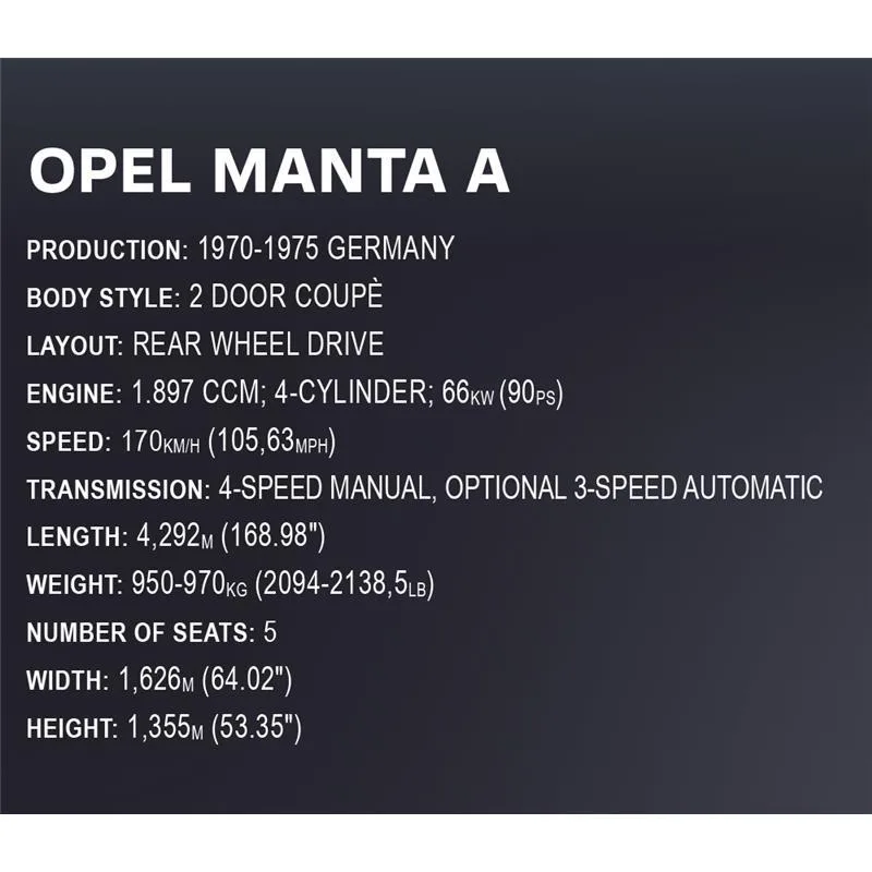 - Modell – Cobi 24339 1970 Opel Manta A 1:12
