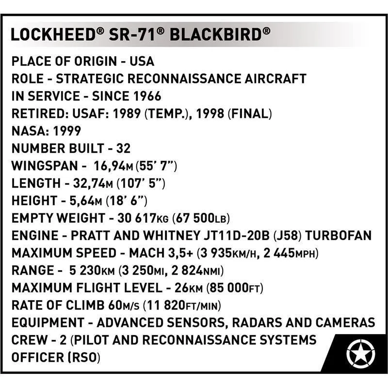 - Modell – Cobi 5891 Lockheed® SR-71® Blackbird®
