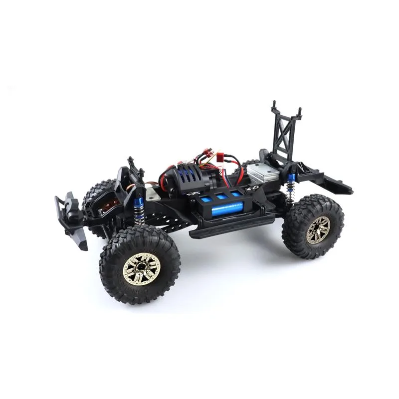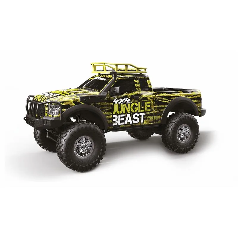 Coole Cross Country Optik trifft auf modernste Features. Dank kräftigem Motor, dem 4WD Allradantrieb und den Oversized-Reifen findet dieser Climbing SUV im Maßstab 1:10 immer seinen Weg aus der Wildnis. Bei Dämmerung hilft zusätzlich die helle LED-Beleuchtung, um jederzeit die Orientierung im Gelände zu wahren. Während die schwarz getönten Scheiben perfekt zum wilden Aussehen passen, lassen sich auf dem Dachgepäckträger dieses Crawlers zudem kleinere Dinge transportieren – ein großes Vergnügen für jeden RC-Piloten. Der Kunststoffrahmen des Fahrzeugs wurde so konzipiert, dass er wirkungsvoll Kollisionen abfedert. Kugellager aus Metall, eine vor Spritzwasser geschützte Elektronik und Stoßdämpfer mit echten Metallfedern unterstreichen den wertigen Eindruck des Modells. Durch eine gut in der Hand liegende und feinfühlige Pistolenfernsteuerung mit moderner 2,4GHz Funktechnologie ist gleichzeitig für eine störungssichere Fahrt gesorgt und auch der parallele Einsatz mehrerer Fahrzeuge aus dieser Serie kein Problem. Der Dirt Climbing SUV wird RTR (Ready-to-Run) ausgeliefert, d.h. alle für den Betrieb benötigten Komponenten – selbst die Batterien für die Fernsteuerung – sind bereits im Lieferumfang enthalten.