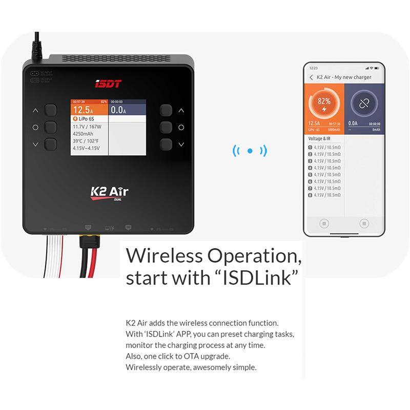 ISDT K2 Air Dual Charger 200 (500)W x2 AC/DC 1-6S ladegerät mit BattAir Technologie
