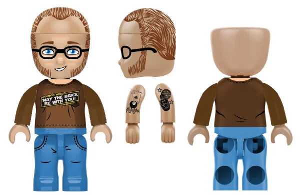 Johnny´s World / Thorsten im braunen Pullover mit "May the Brick be with you" Aufdruck. Als Add-on für Thorsten gibt es 2 nackige Arme mit Tattoo-Aufdruck