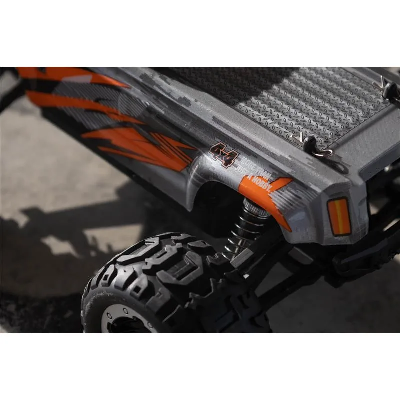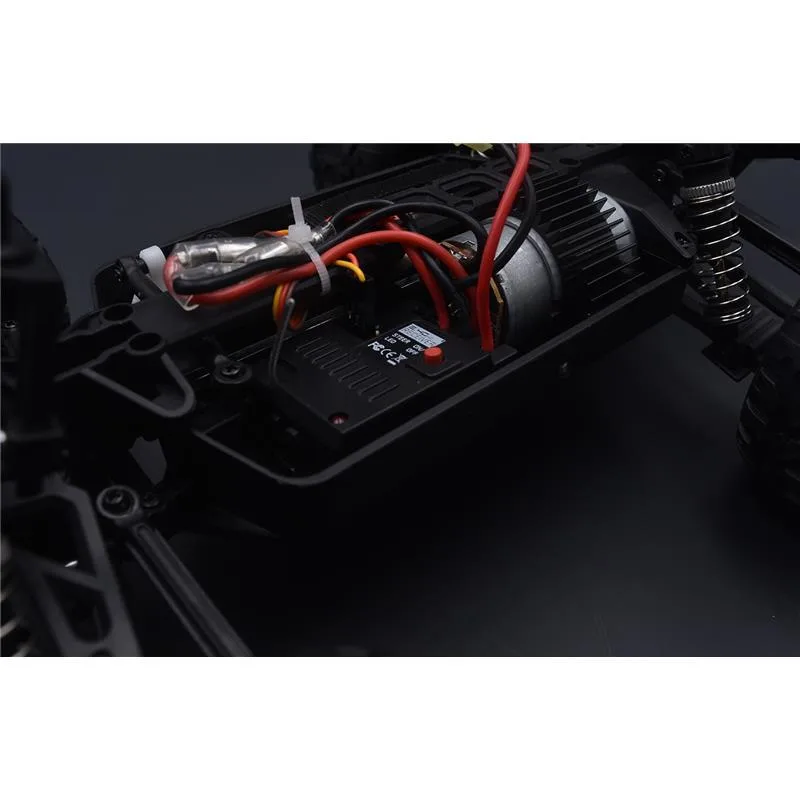 Seine Getriebeeinheit ist komplett gekapselt, daher können Steine oder grober Schmutz dem Antrieb nichts anhaben. Ein aufwändiger Lenkungsdämpfer schützt das 9g Lenkservo außerdem vor heftigen Stößen.