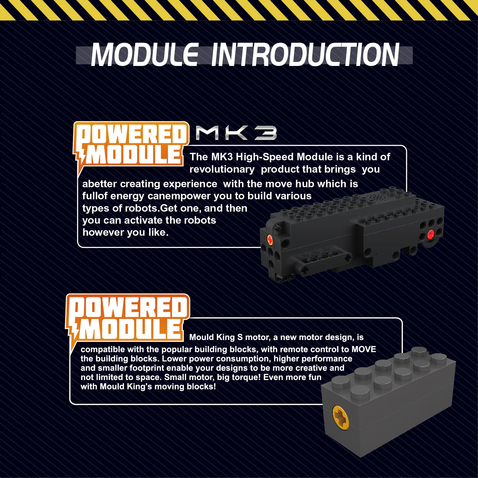 Mould King Sets bestehen aus Klemmbausteinen der Marke GoBricks. GoBricks haben eine hervorragende Qualität und Klemmkraft. Die Produktpalette von Mould King bietet hauptsächlich herausfordernde Technic-Modelle. Für die Klemmbaustein-Architekten sind die detailreichen modularen Gebäude besonders interessant. Mould King hat ein Powerfunctions-System durch welches sich Deine Konstruktionen nachtrüglich motorisieren und fernsteuern lassen.