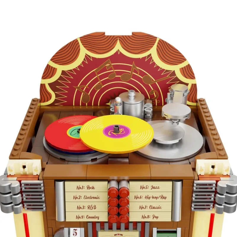 Mit der Pantasy Jukebox kreierst du ein stimmungsvollen Kultobjekt im Miniformat – perfekt für deine Vitrine, dein Regal oder als Hingucker auf dem Schreibtisch. Die Kombination aus glänzenden bunten Steinen in Warmtönen, chromfarbenen Akzenten und transparenten Elementen verleiht dem Modell einen echten Vintage-Charme.