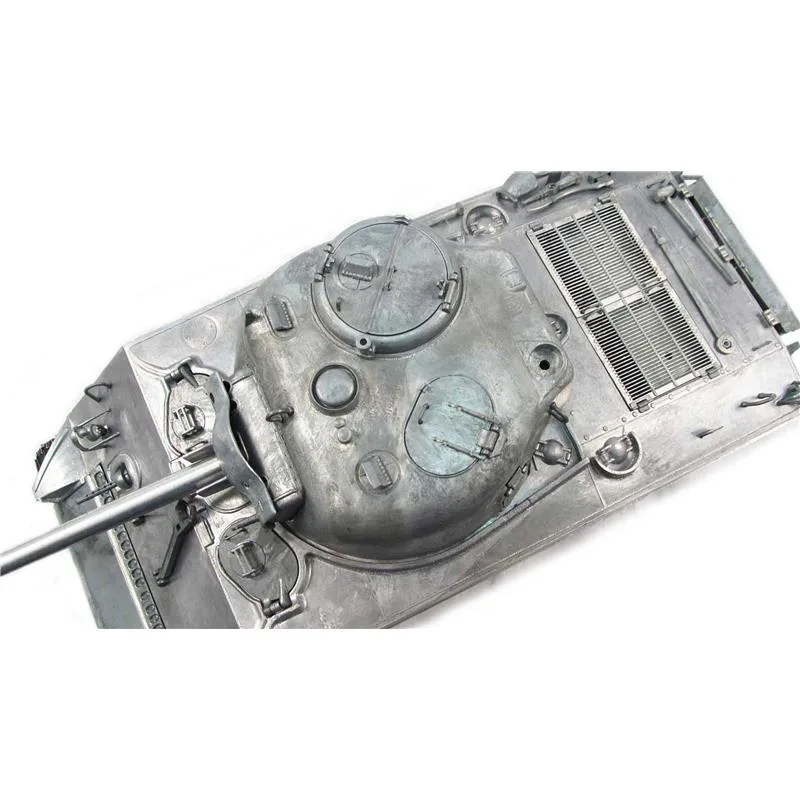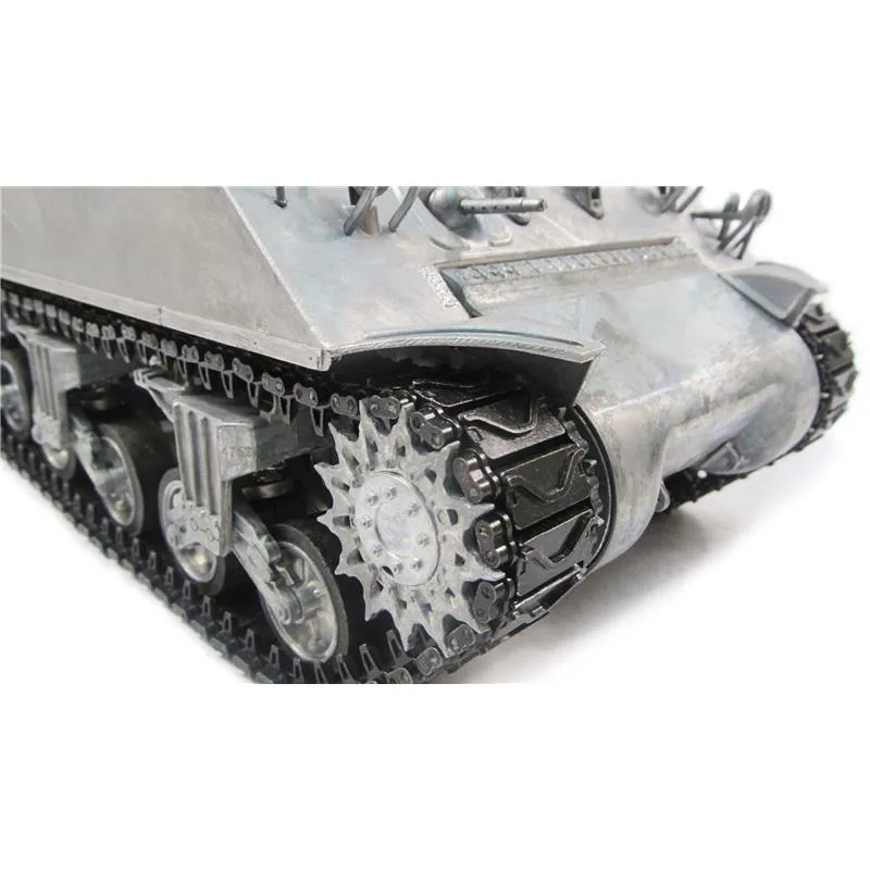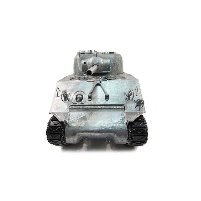 Panzer M4A3 – RTR Version – Komplett aus Metall Mit größter Sorgfalt und Präzision wurde dieser Panzer im Maßstab 1:16 detailgetreu und vollständig aus Metall hergestellt. IR-Version. Die Kanone ist höhenverstellbar, der Turm 360° drehbar. Sämtliche Bauteile sind aus Metall: Kanonenrohr, Laufrollen, Gefechtsturm, Ketten, Unterwanne, Luken etc. Hochwertiges Messing Getriebe. Hochwertiges True Sound Modul: Sound Elektronik vom Spezialisten -sehr hochwertig Verschiedene Sound-Effekte für Motor, Kanone, MG Inkl. hochwertiger 2,4 GHz 6-Kanal Fernsteuerung und 3.300mAh Ni-Mh Akku