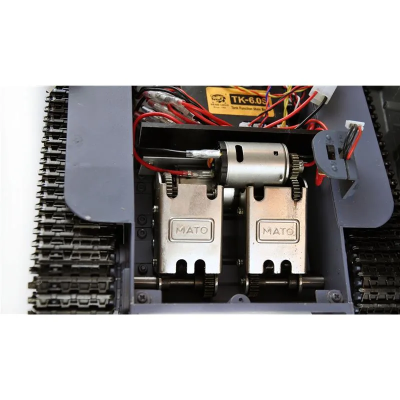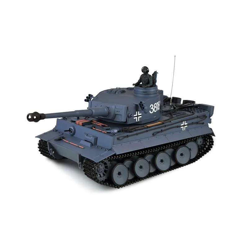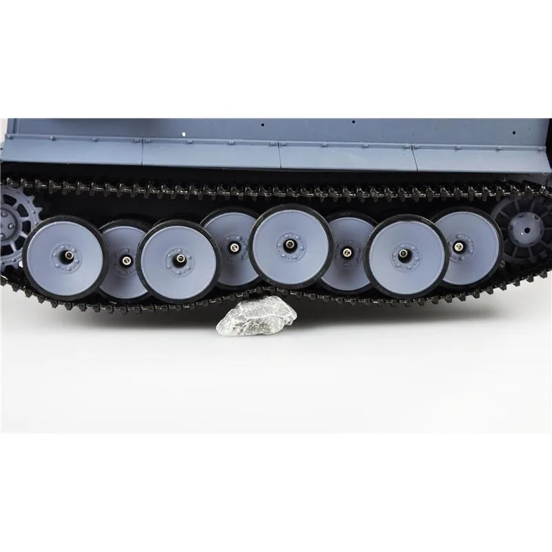 Die AMEWI Sonder-Edition ist ein originalgetreuer Nachbau im Maßstab 1:16. Es handelt sich hierbei um eine RTR (Ready To Run) Version in der neuesten Ausführung (Elektronik TK 6.0) und ist mit einem gekapselten Metallgetriebe und Metallschwingen für die Laufräder ausgestattet. Diese Pro II Version ist eine Special Edition dieses Panzers und so nur von Amewi erhältlich. Die Unterwanne besteht bei diesem Modell aus Metall. Desweiteren ist auch das Metall Hauptgetriebe inkl. Motoren, für das hohe Gewicht optimiert, gefertigt worden. Das Getriebe ist sehr fein Übersetzt, was zur Folge hat, dass das gasamte Fahrbild dem Original sehr Nah kommt. Hinzu kommt, dass durch die Verwendung des Getriebes, sich die Endgeschwindigkeit und die Drehgeschwindigkeit erhöht. Die Ketten sowie die Laufräder sind ebenfalls aus Metall gefertigt. Der Panzer verfügt zudem über eine Rauch- und Soundfunktion. Der gesamte Aufbau ist in dieser Sonder-Edition mit einem Schnellverschluss verriegelt und ermöglicht das öffen des Panzers in kurzer Zeit um z.B. den Akku zu wechseln. Im voderen Bereich sind 2 Wartungsluken untergebracht die auf der linken Seite über den Ein / Ausschalter und einer Ladebuchse verfügen. Die Lieferung des Modells erfolgt in einer hochwertigen Echtholzbox mit passendem Styroporkern. Jeder Panzer wird vor der Auslieferung auf Funktionalität und Vollständigkeit getestet. Eine Checkliste liegt bei. Ebenfalls im Lieferumfang enthalten ist ein Infrarot Kampfmodul, welches spannende Zweikämpfe mit anderen Modellen der AMEWI Advanced oder Pro Linie zulässt. Bei einem direkten Treffer mit dem Infrarot MG “schüttelt” sich der getroffene Panzer und zeigt somit einen Treffer an. Der Panzer lässt sich feinfühlig steuern und das tolle Modell besticht zudem durch originalgetreue Geräusche und durch viele Funktionen. Der Tiger verfügt neben dem Infrarot Kampfmodul noch über eine 6mm BB Schussanlage über das Hauptgeschütz (Kanone). Alle Funktionen sind voll proportional steuerbar. Fünf verschiedene Motor Sounds sind über den Sender einstellbar.