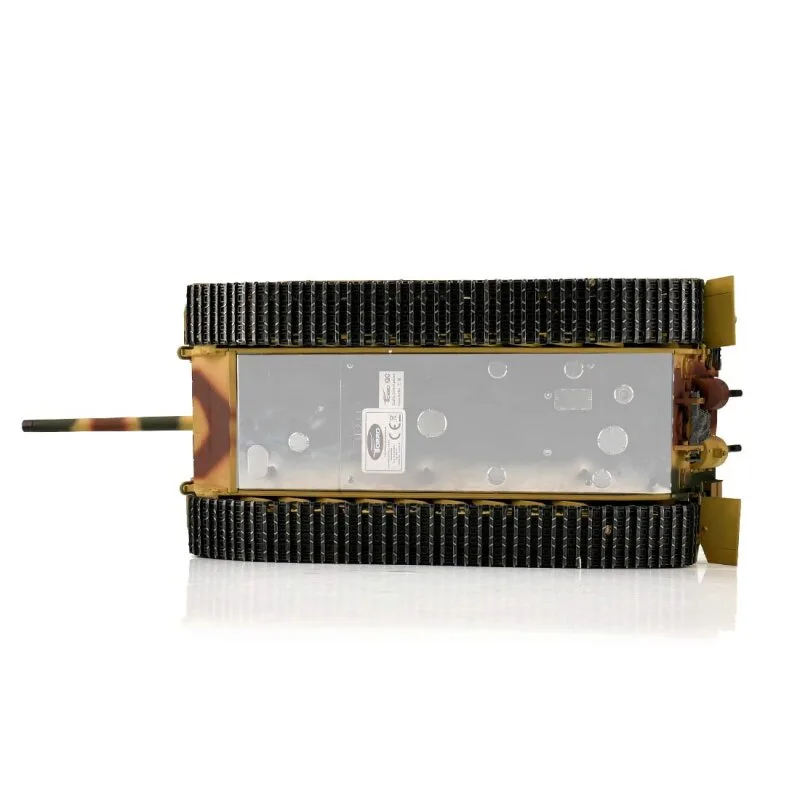 Das kraftvolle Paket verfügt über eine 2.4 GHz Steuerung. Die Motoren mit optimiertem Drehmoment verleihen dem Jagdtiger eine präzise, ruckelfreie Fahrt. Metallgetriebe mit robusten Zahnrädern und einer verbesserten Übersetzung sorgen für höhere Kraft. Durch die proportionale Steuerung können Sie den Panzer ganz langsam anfahren und die Geschwindigkeit stufenlos erhöhen. Der Jagdtiger fährt vorwärts und rückwärts, auch jeweils mit einer Links- und Rechtsdrehung. Ebenso lässt er sich auf der Stelle links- bzw. rechtsherum drehen. Sie können die Kanone heben und senken. Verschiedene Motorengeräusche und die Rauchbildung aus den Auspufftöpfen runden das realitätsnahe Erlebnis ab.