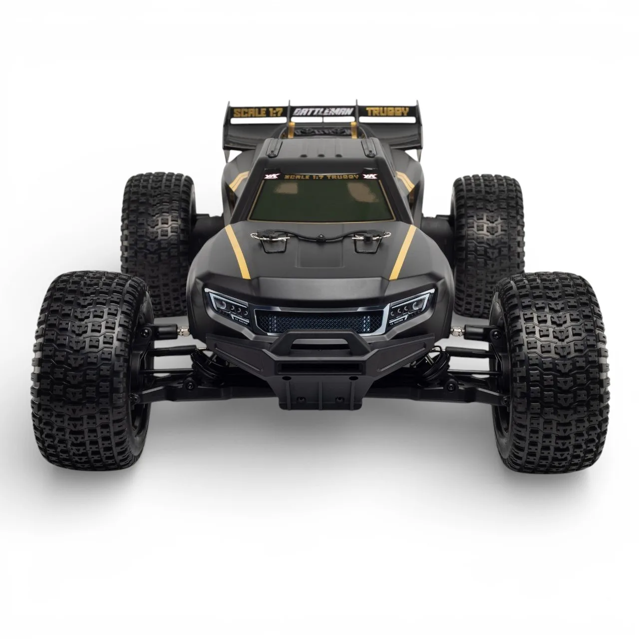 Vormontierter YT7 PRO 1/7 Scale 4WD Racing Truggy (RTR), lackierte Karosserie, Fernsteuerung, Anleitung. (Benötigt werden noch: Fahrakku (bis 6S LiPo empfohlen), passendes Ladegerät und Batterien für den Sender)